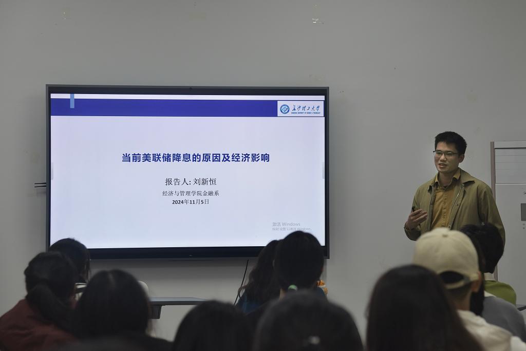 为培养新商科人才,引导大学生了解经济动态,11月5日晚,经管学院于经管大楼101活动室举办第一期经济热点分享会,分享会话题为美联储降息。本次分享会由金融系青年教师刘新恒主讲,辅导员杨舒文主持。