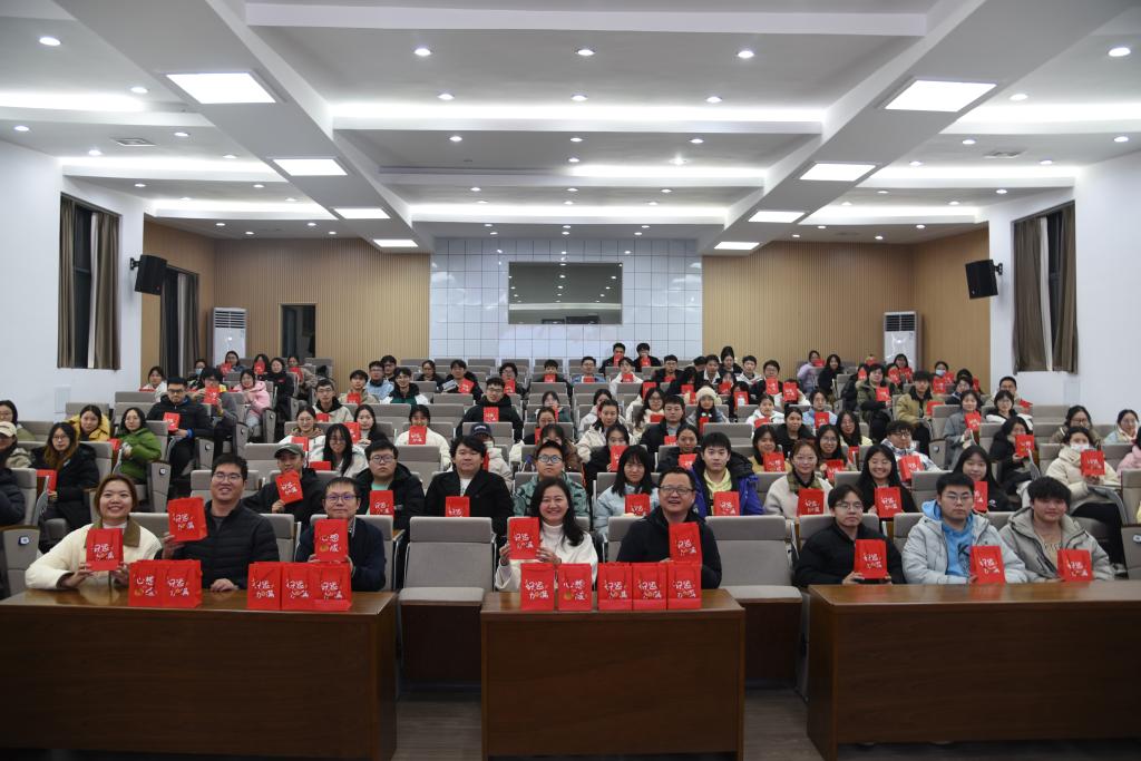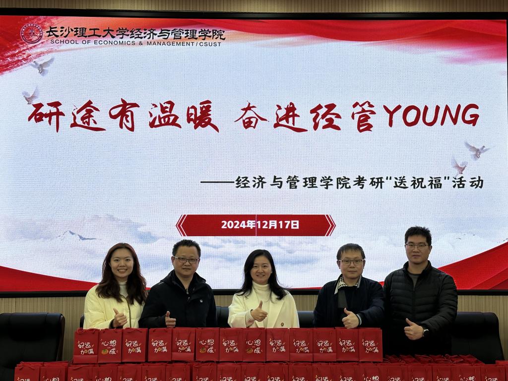 12月17日晚,为给考研学子送去温暖与祝福,助力圆梦研途,经管学院于经管大楼100报告厅举办“研途有温暖,奋进经管YOUNG”考研“送祝福”活动。院党委书记马丽、副书记汪功伟,副院长何昊,辅导员杨舒文、王宝宝以及2025届考研学子参与了本次活动。活动由汪功伟主持。