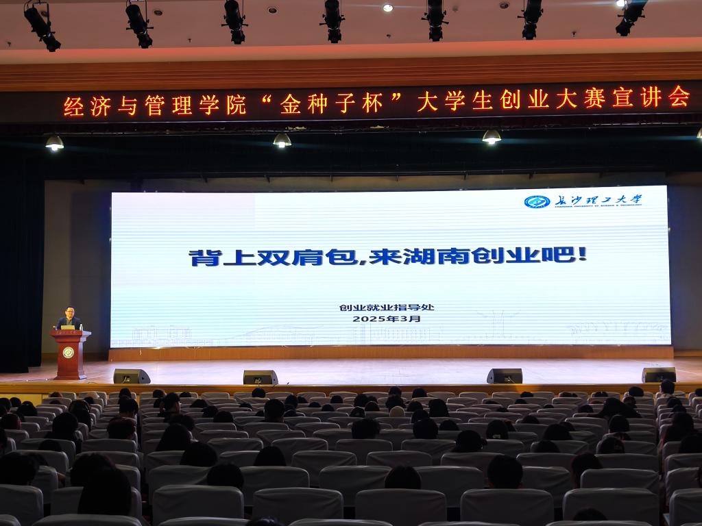 4月1日下午,经管学院在五教大礼堂举行“金种子杯”大学生创业大赛及湖南省创业政策宣讲会。参加宣讲的有院党委副书记汪功伟,创业学生代表2023级研究生吴格莎、校友胡家伟,各班级班委、寝室长。