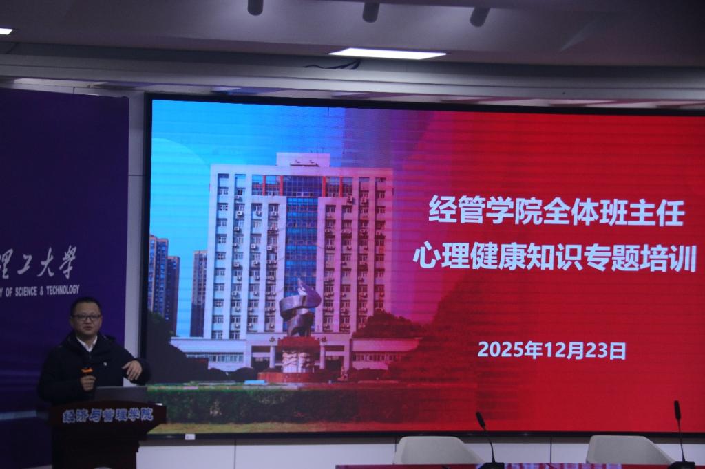 12月23日下午,经管学院在12教200报告厅开展班主任心理健康专题培训。学院特邀学校心理健康中心杨爽博士担任主讲,全体班主任参与学习,学院党委副书记汪功伟主持。