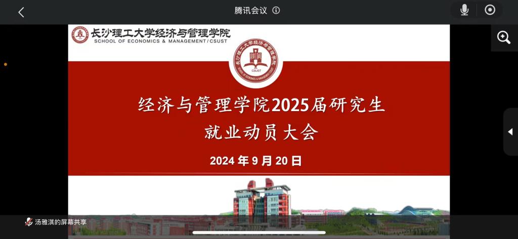 为帮助毕业生了解就业形势、就业政策,调整就业心态,提高就业积极性,我院于2024年9月20日中午召开了2025届毕业研究生就业动员大会。因部分同学在外实习,本次就业动员大会以线上方式进行,毕业班共计200余名毕业研究生均按时参加了此次线上会议。学院党委副书记汪功伟、辅导员肖翠、周路路参加本次会议。
