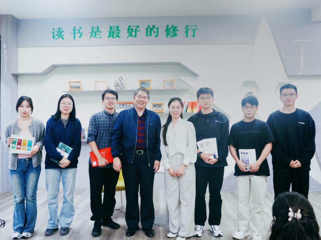 随后,24级经济班汤文韬、袁贝等四位同学向大家分享了阅读的心得与感悟。他们对于经典书籍的独到见解引起场下观众同学的积极思考,点燃了同学们与教授沟通交流的热情。同时,在答疑互动环节中,刘祚祥与参会同学进行了深入互动,耐心解答了与会同学的积极提问,现场气氛活跃,阅读氛围浓厚。