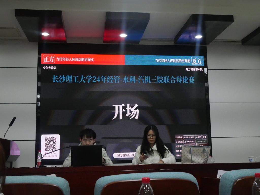 12月14日晚19:00在金盆岭校区第7教学楼212举行了经管-汽机-水利三院联合辩论赛的首战。比赛分上下两场,评委由经管学院金星邑,化学化工学院刘程亮和文新学院马程昶担任并对比赛进行了专业评判。首场比赛的辩题为“当代年轻人应该活得更现实VS当代年轻人应该活得更理想”,经管学院的“少年先锋队”作为正方,主张年轻人应更现实地面对生活和工作,而汽机学院的“对手辩题都不队”作为反方,提倡年轻人应追求理想。经过激烈辩论,“少年先锋队”凭借其有力的论据和出色的表达能力,赢得了比赛。紧接着的第二场比赛,辩题为“下班后工作消息应该回复VS下班后工作消息不应该回复”。经管学院的“输了怪领队”队作为正方,支持下班后回复工作消息,而水利学院的“优势在我”队作为反方,反对下班后回复工作消息。正方通过实际案例和逻辑推理,强调了及时沟通的重要性,而反方则从工作生活平衡的角度出发,论证了下班后不应被工作消息打扰。最终,“输了怪领队”队以其深刻的洞察和有力的论证赢得了比赛。