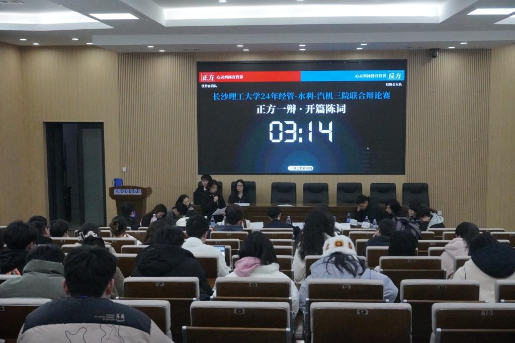 辩论总是在思想的碰撞中闪耀智慧火花,于言语的交锋间展现青春风采。2024年12月26日,由雷竞技官网经济与管理学院主办的经管-汽机-水利三院联合辩论赛决赛于经管大楼100报告厅落下帷幕。受邀出席本次比赛的评委是来自长沙理工大学校研究生辩论队的金星邑学姐,来自湖南师范大学的干怀博学长以及来自中南林业科技大学的汤皓玮学长。比赛由付文静、方志成主持,经管、水利学院各班研究生作为现场观众。这场知识与思维、智慧与口才的盛宴,给我们带来了精彩绝伦的享受,让每一位观众都沉浸其中,感受辩论的魅力。