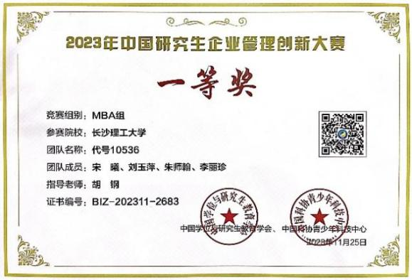 雷竞技官网共有两支由胡钢老师带领的研究生队伍获奖,其中由2022级MBA学员宋曦、刘玉萍、朱师翰、李丽珍组成的“代号10536”战队在决赛中表现出色,荣获2023年中国研究生企业管理创新大赛一等奖!
