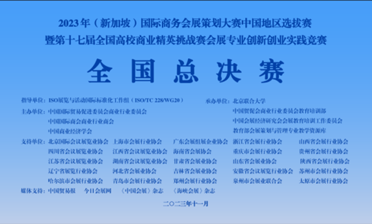 2023年11月11日,由中国国际贸易促进委员会商业行业委员会、中国国际商会商业行业商会与中国商业经济学会共同主办第十七届全国高校商业精英挑战赛会展专业创新创业实践竞赛总决赛分组赛在线成功举办。根据中国高等教育学会高校竞赛评估与管理体系研究工作组发布的《全国普通高校大学生竞赛排行榜》,全国高校商业精英挑战赛会展专业创新创业实践竞赛(以下简称“会展竞赛”)已纳入学科竞赛排行榜。会展竞赛经过十六年培育发展,已成为我国会展教育领域中,院校覆盖全面、校企合作深入、国际交流广泛的赛事活动,形成了集学科竞赛、产学合作与国际交流三位一体的创新实践平台。