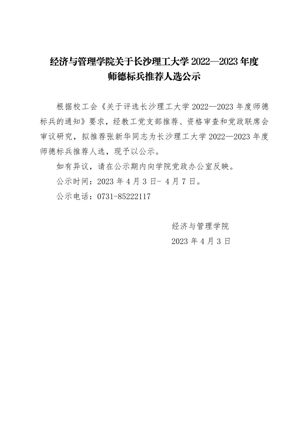 经济与管理学院关于长沙理工大学2022—2023年度师德标兵推荐人选公示