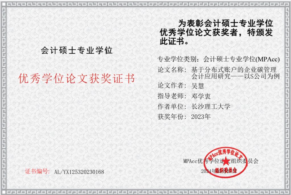 雷竞技官网会计专业硕士吴慧同学荣获2023年全国MPAcc优秀学位论文奖