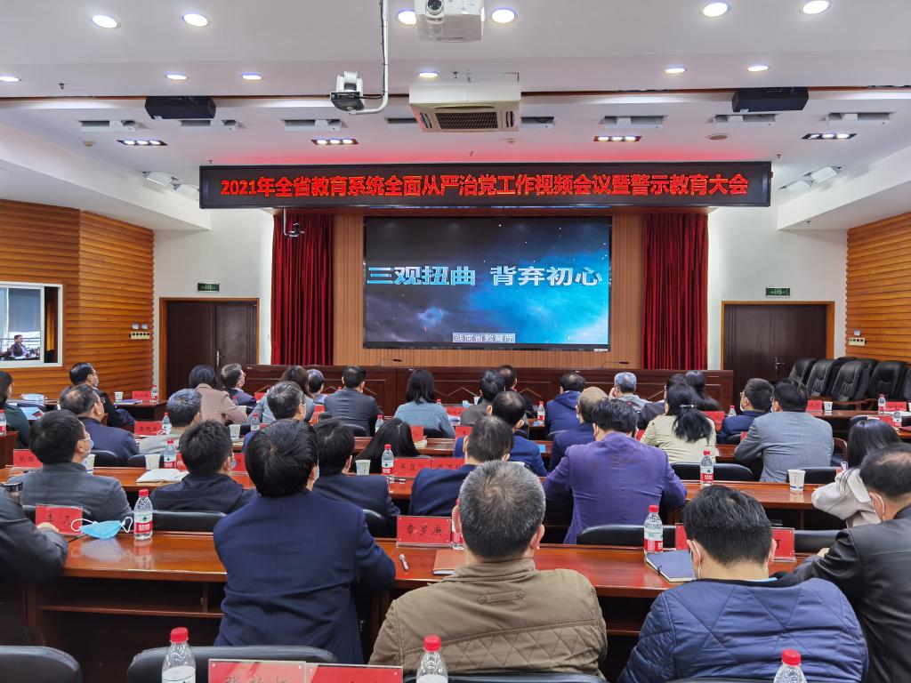 4月8日上午,省教育厅、省委教育工委召开2021年全省教育系统全面从严治党工作视频会议暨警示教育大会,传达十九届中央纪委五次全会、全国教育系统2021年全面从严治党工作视频会议和省十一届纪委六次全会精神,回顾总结2020年全省教育系统全面从严治党工作,部署安排2021年工作,开展警示教育。