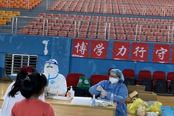 纪检监察处刘卓明副处长在体育馆协助开展核酸检测