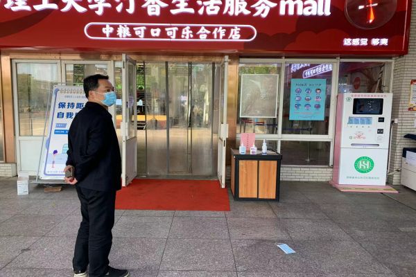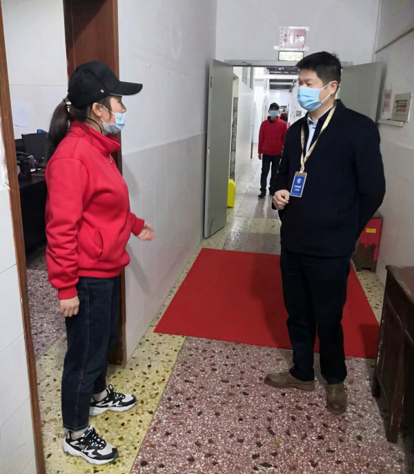 派驻后勤中心纪检员彭玉楼检查教学楼防疫情况