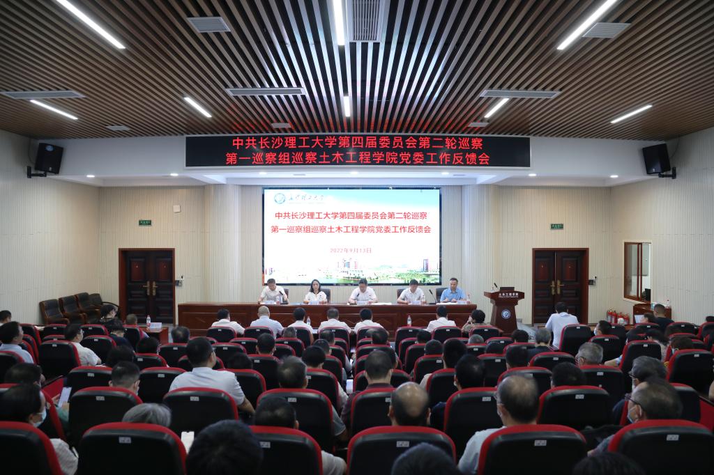 2022年9月13日,根据学校党委统一安排,党委巡察组巡察土木工程学院党委、国际工学院党总支反馈会先后召开。校纪委书记、省监委驻长沙理工大学监察专员、党委巡察工作领导小组副组长徐桂林出席反馈会,传达学校党委对巡察整改工作的要求。第一巡察组组长胡秀英、第二巡察组组长易贵民分别反馈巡察意见。校纪委副书记、监察处处长方文彬,巡察组组长、副组长,被巡察单位全体教职工参加反馈会。