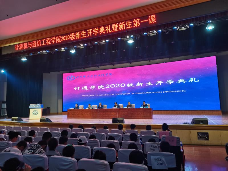 又是一年开学季,新生的到来给校园注入了新的活力,为帮助新生更好地适应大学生活,计通学院2020级新生开学典礼暨院长第一课于10月13日晚7时在金盆岭校区五教大礼堂隆重召开。全体院领导、系室主任、新生班主任和辅导员出席大会,497名本科生和168名研究生新生参加了本次会议,会议由院党委副书记涂道勇主持。