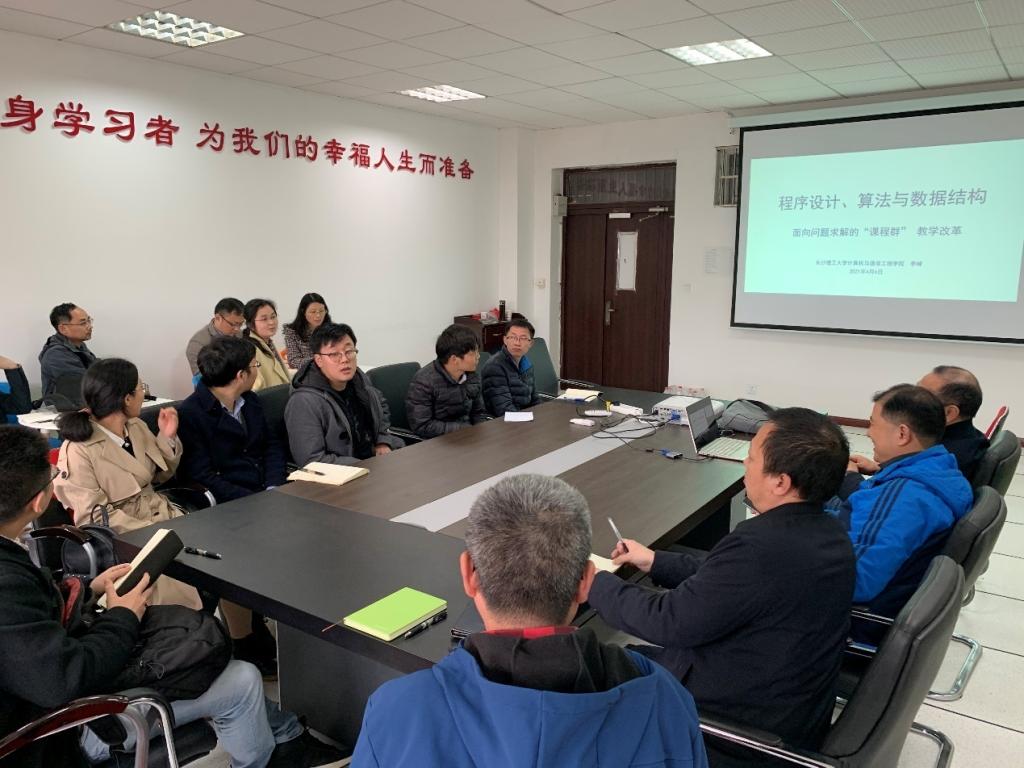 李峰教授为青年博士教师详细解读了面向问题求解的课程群教学改革全新体系与建设任务。提出以“问题求解”能力培养为贯穿全课程的总目标,重组从理论到模型,再到算法及实现的知识点,提高学生解决问题的能力。他指出现阶段团队建设工作的重点是对课程内容进行梳理、封装、整合与宏观设计。王威与陈曦教授也对青年博士教师提出了各自观点与建议。