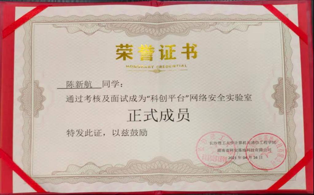 我院与湖南省网安基地科技有限公司联合成立的“科创平台”网络安全实验室是我院首个从事网络安全技术研究的校企联合科研实验室,也是我院在网络安全攻防技术方面迈出的关键一步。相信通过“科创平台”网络安全实验室15位成员的不懈努力,我院学子将会在各大网络安全攻防竞赛上大放异彩。