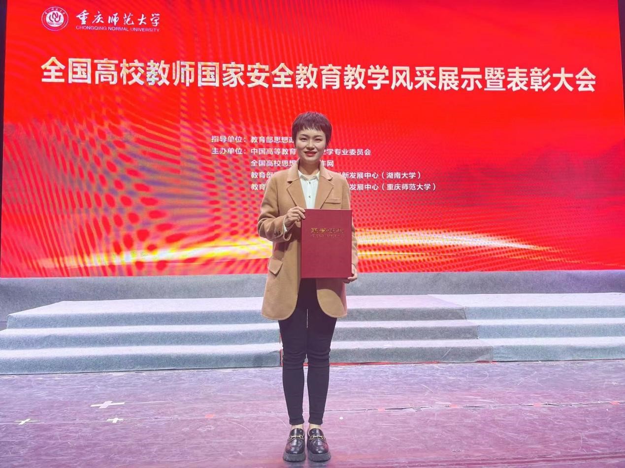 我院党委副书记王觊婧荣获全国高校国家安全教育教学风采展示全国总决赛闪亮风采教师奖