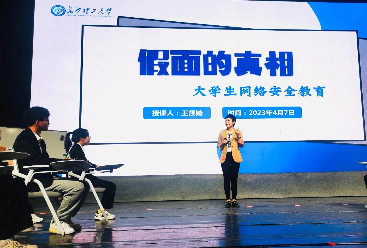 活动分为网络展示和现场展示两个环节。在前期的视频征集评比中,经过单位申报、专家遴选后,共112件作品入围网络展示环节,30名教师进行现场展示。在现场展示环节中,王觊婧以《假面的真相——大学生网络安全教育》为题,围绕网络安全教育专题进行授课,以诙谐幽默的课堂风格,结合当下的时事热点,生动阐释了网络安全对于国家总体安全的重要性,点明了大学生群体在构建网络安全防护屏障中的重要意义。