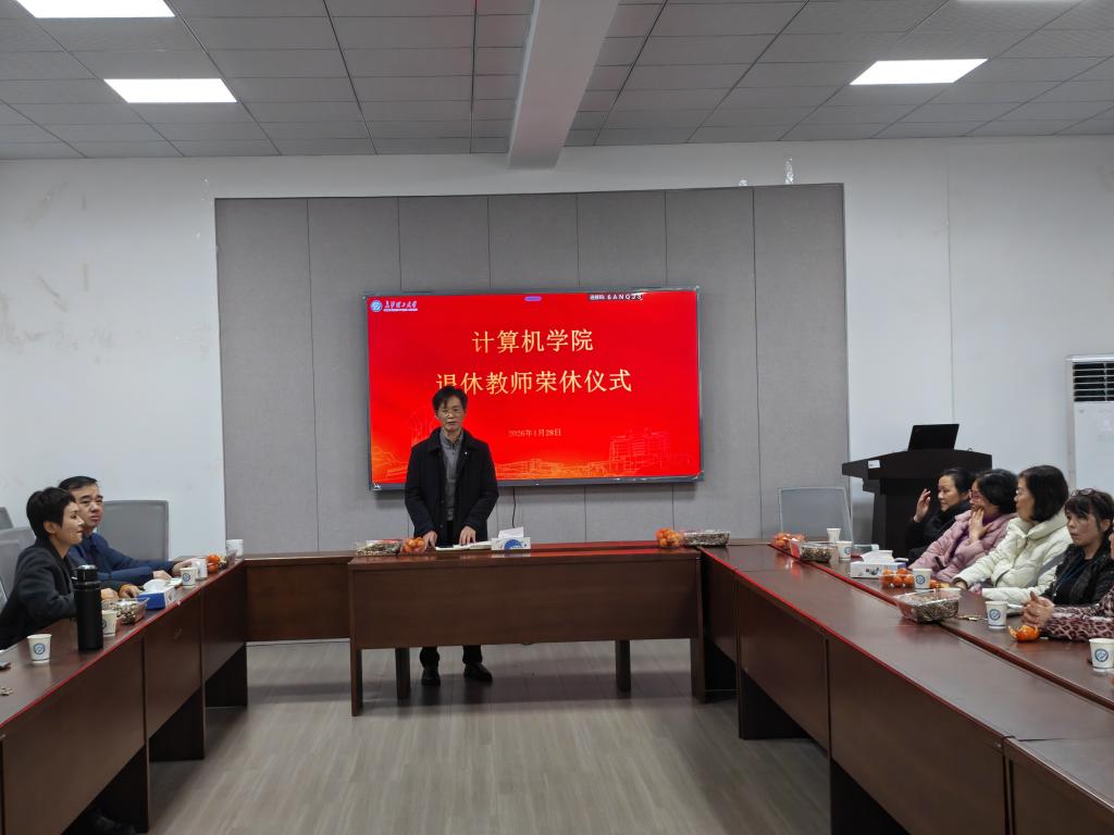 2026年1月28日下午,计算机学院退休教职工茶话会在九教211会议室举行。学院领导班子成员、退休教师、各系室负责人齐聚一堂,共叙情谊、共话发展。会议由党委副书记王觊婧主持。