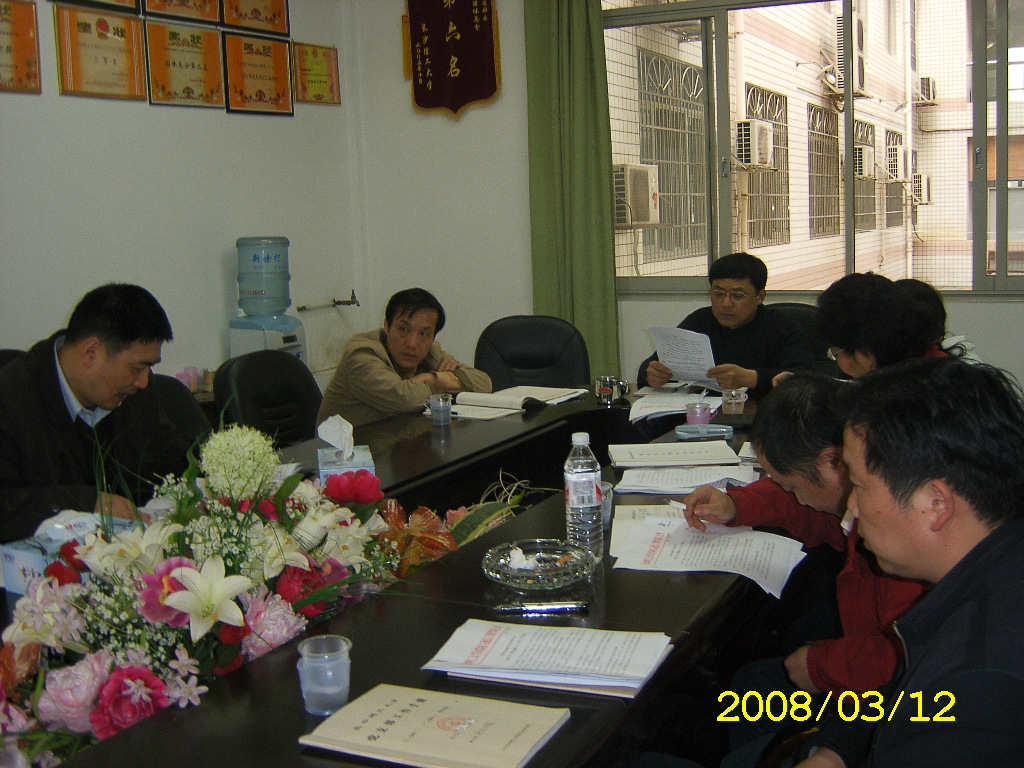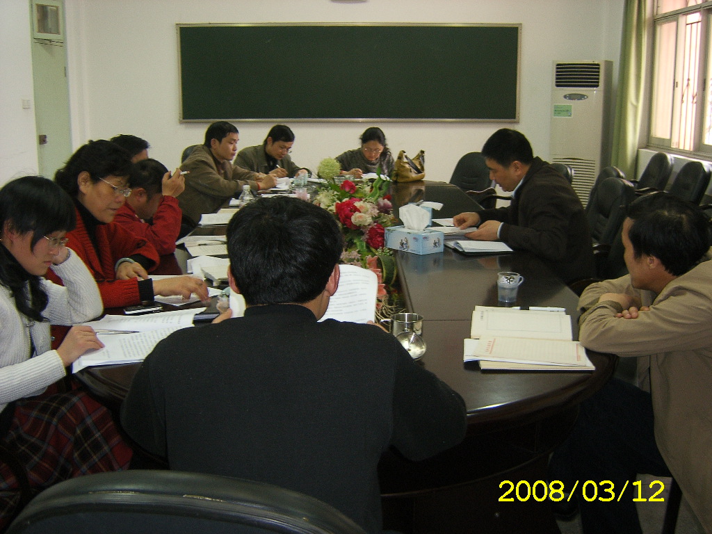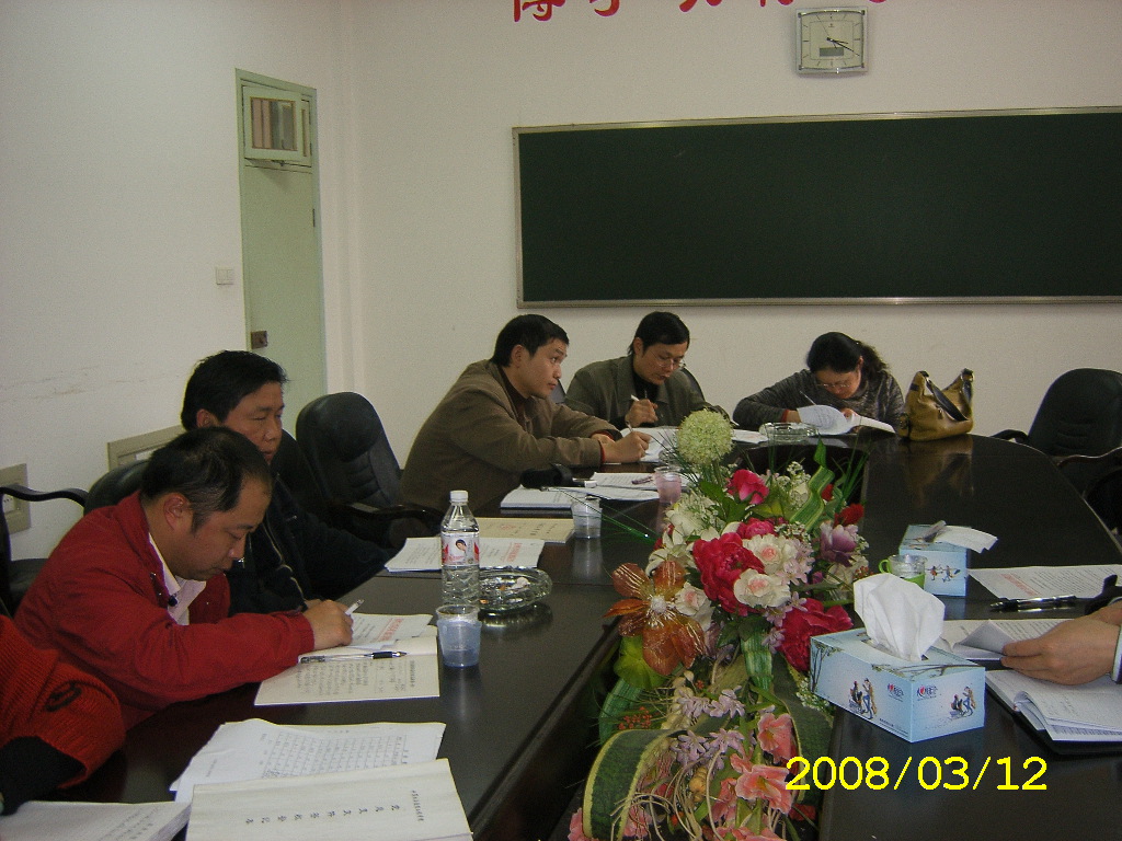 3月12日下午3点,在学院会议室,院党总支罗可书记召集各党支部书记召开会议,会上罗书记布置了本学期学院党建重点工作;组织学习了校党宣[2008]1、2、3号文件、党组[2008]4号文件以及胡锦涛总书记在十七大等会上的讲话精神。书记们还就教工入党积极分子的情况以及如何做好本学期党建工作等进行了讨论。