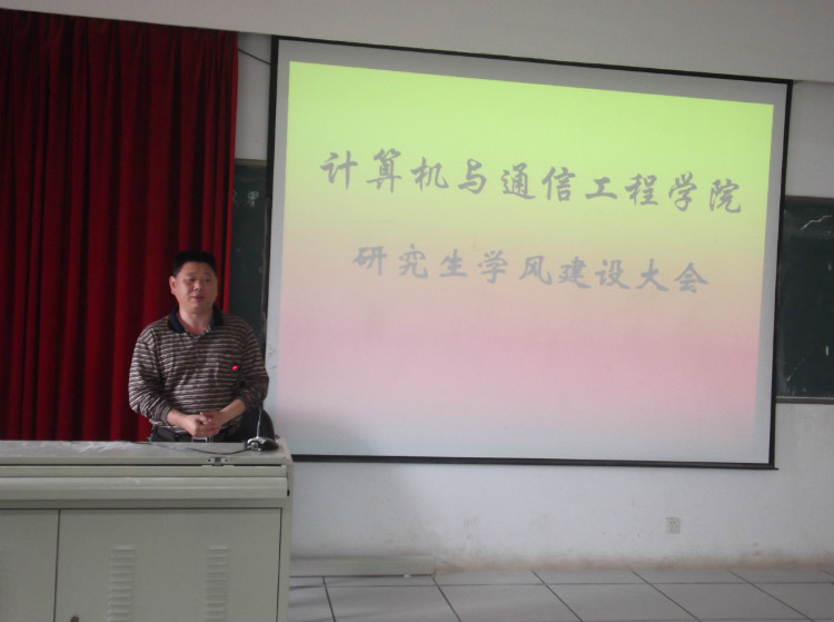 5月4日下午,计算机与通信工程学院在理科楼B311召开研究生学风建设大会。2012年是雷竞技官网学风建设年,计通学院借此召开本次研究生学风建设大会。院长李峰,院党委副书记方碧波、副院长徐蔚鸿、研究生导师史长琼以及计通学院全体研究生出席了大会,大会由徐蔚鸿副院长主持。