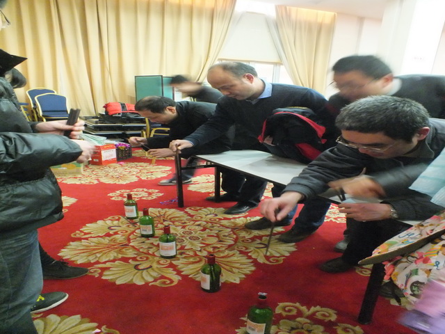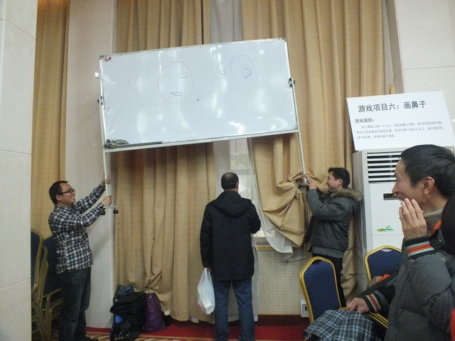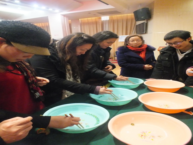 文艺汇演之后,学院工会进行了趣味游艺活动。有蒙眼敲锣、夹弹子、抢凳子、夹气球跑、投飞镖、画鼻子、比眼力、搬运乒乓八项活动。老师们在一年辛苦工作之余,轻松愉快地玩着各个项目,拿着获得的奖票,兑换着学院工会提前准备的各式奖品,喜悦之情溢于言表,个个都是满载而归。