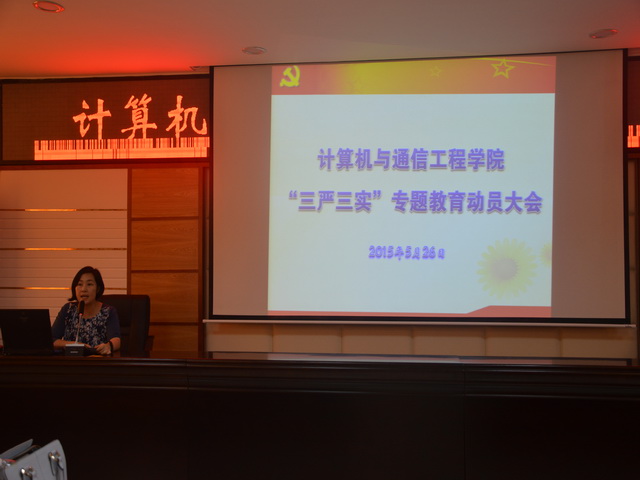 会上,方琼首先和全体党员一起共同学习了校党委书记付宏渊在学校启动“三严三实”专题教育中题为《把握“三严三实”实践要求,全面推进学校改革发展》的动员报告。同时就学习习近平总书记一系列重要讲话精神和党课学习体会,结合学院实际情况,谈了两点体会:一是准确把握,全面领会“三严三实”深刻内涵;二是精心组织,确保学院专题教育取得实效。并对下一阶段“三严三实”专题教育进行了部署:号召全体党员把理论武装放在首位;从严查找问题;从实进行党性分析;切实解决存在问题。并要求各基层党支部精心组织,确保学院“三严三实”专题教育取得实效。