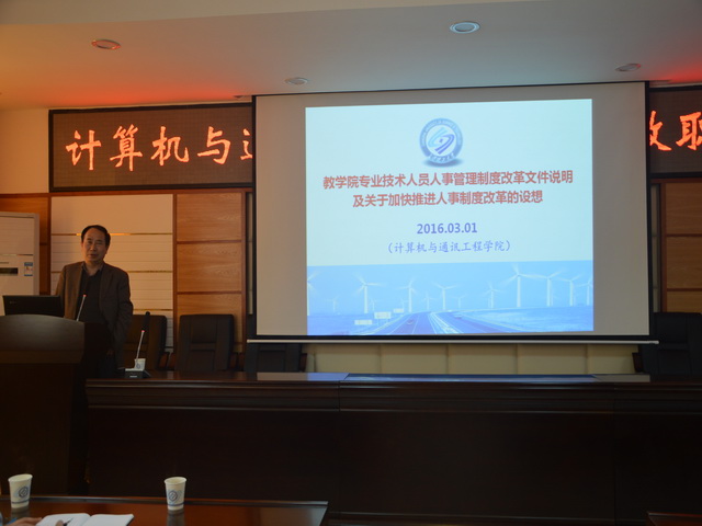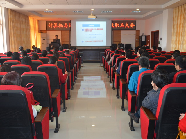 副校长黄立宏为我院教职工做“教学院专业技术人员人事管理制度改革文件说明及关于加快推进人事制度改革的设想”宣讲
