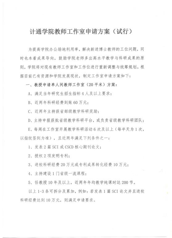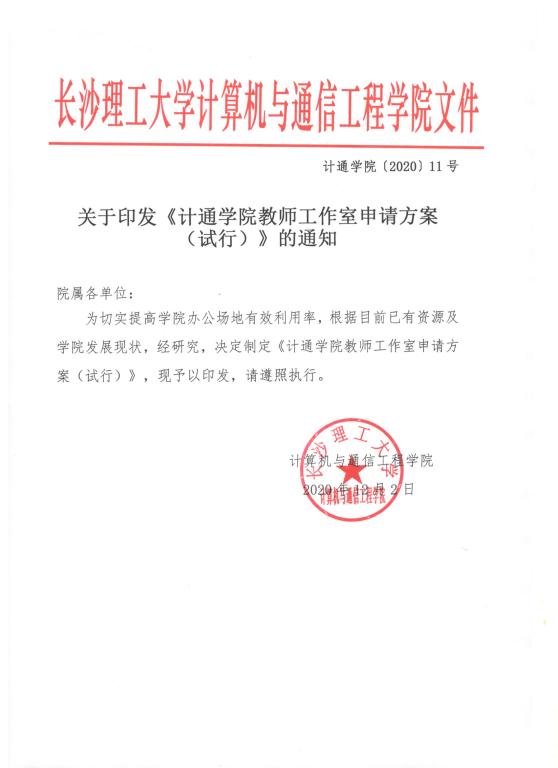 关于印发《计通学院教师工作室申请方案》的通知