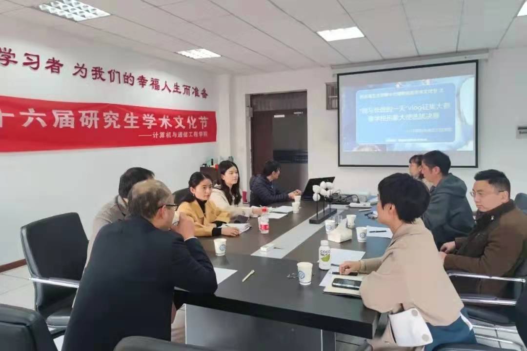 本次vlog征集大赛分为初赛和决赛,初赛历时20天共收到来自14支参赛队伍的作品,随后研院会干部组成评审团对作品进行初审,选出9支队伍进入决赛并对作品给出适当的修改意见。12月9日于理科楼B504开展了vlog征集大赛暨学校形象大使选拔决赛,党委书记刘宏伟,党委副书记(代)王觊婧,研究生导师章登勇、夏卓群、史长琼,教务办主任李秋桂以及全体学工办老师组成评委团对修改后的参赛作品及形象大使进行最终评定并推选优秀的作品和形象大使代表计通学院去校里参与评比。