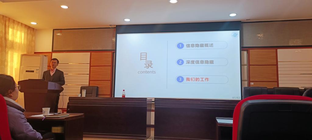 为加强学术交流,营造良好的学术文化和氛围,拓宽师生学术视野,12月22日下午15:40,计通学院邀请南京信息工程大学的付章杰教授于长沙理工大学云塘校区理科楼B311作“深度信息隐藏”的学术讲座。该讲座由计通学院副院长何施茗主持,副院长章登勇、研究生导师向凌云、督学导师王伟征以及19级、20级研究生参加了本次报告会。
