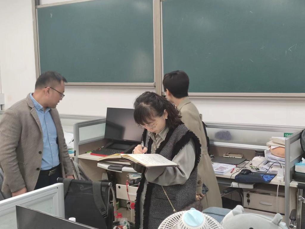 10月10日上午,计通学院开展研究生工作室安全专项检查活动,本次检查由学院党委副书记王觊婧、副院长夏卓群、章登勇带队,研究生辅导员易亭亭、参与本次专项检查。对云塘校区理科楼7个研究生工作室进行了详细的检查。