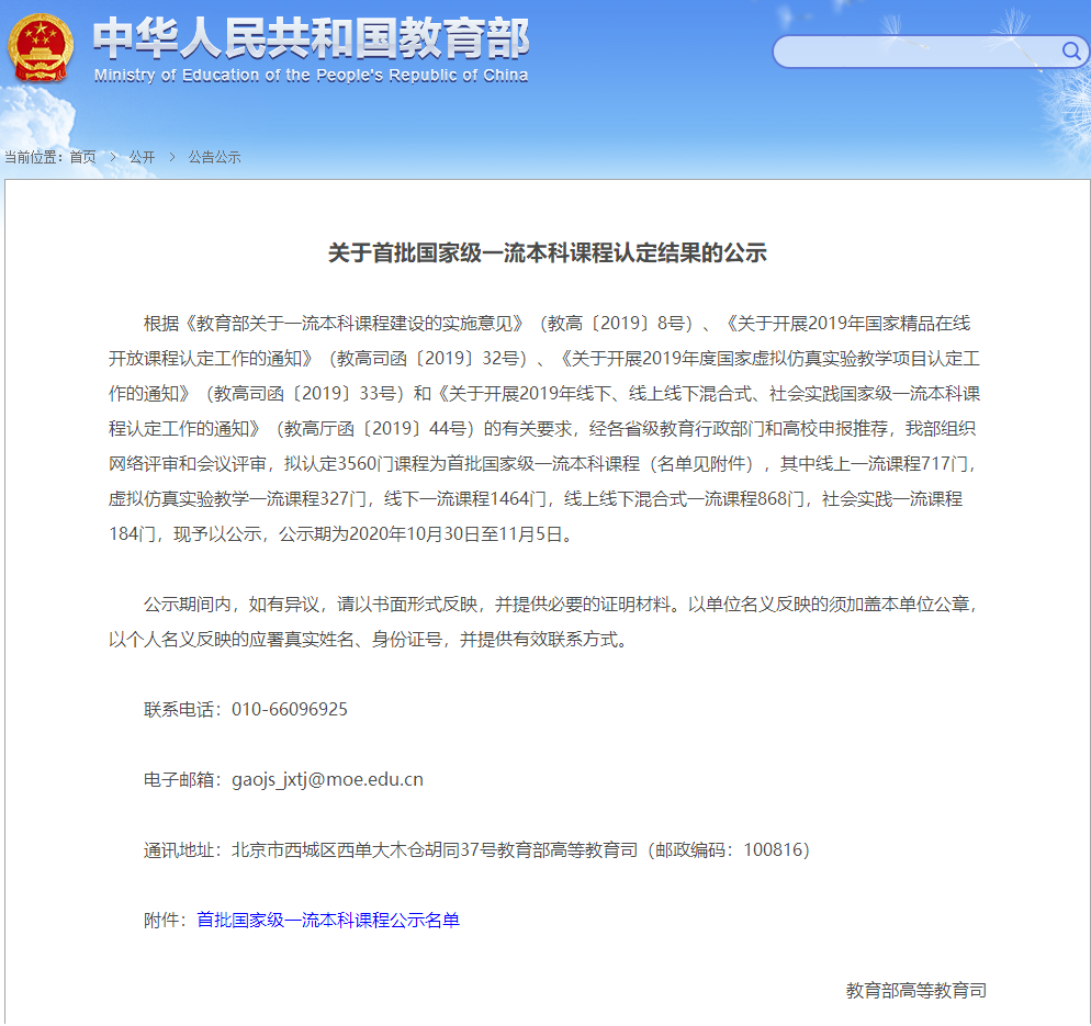 近日,教育部高等教育司公布了《关于首批国家级一流本科课程认定结果的公示》,认定3560门课程为首批国家级一流本科课程,我院邓泽林副教授主持建设的《程序设计、算法与数据结构》课程被认定为国家级线下一流本科课程。这标志着我院在本科课程建设上取得了新的重大突破,为构建高水平人才培养体系打下良好基础。