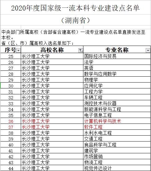 据悉,本次教育部一流本科专业建设“双万计划”评选共认定了3977个国家级一流本科专业建设点,其中中央赛道1387个、地方赛道2590个,此次长沙理工大学共有20个专业入选国家级一流本科专业建设点,我院计算机科学与技术、软件工程2个专业位列其中。