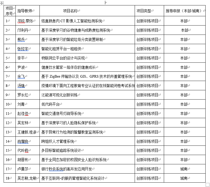 计通学院2022年大学生创新创业训练计划项目推荐公示表