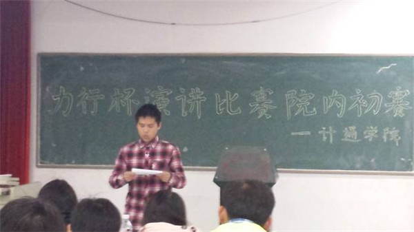 11月30日晚7点,由朝闻道演讲协会承办的力行杯演讲比赛院内初赛在理科楼B311举行。本演讲比赛以“弘毅,行健,至诚”为主题。院学生会副主席和洋,梁筱以及朝文道协会代表担任此次比赛的评委。