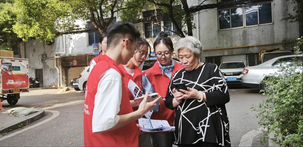 随后,支部成员深入涂新社区,将专业知识与志愿服务结合,开展"银龄守护"专项行动。在社区街巷,针对老年人面临的"数字鸿沟"与新型诈骗威胁,党员们通过"情景模拟+实景教学"模式,还原冒充公检法、虚假投资理财等典型诈骗场景,提升老年群体风险识别能力;组建"1+1"帮扶小组,开展智能手机操作、电子医保激活等适老化服务。活动现场累计服务居民80余人次,发放防诈手册120余份,得到社区群众高度评价。