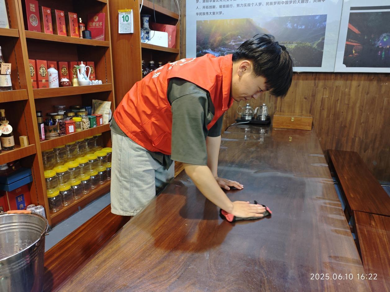 参观结束后,同学们主动投身志愿服务,协助打扫场馆卫生。大家分工明确、协作有序,认真清扫地面、仔细擦拭展柜,以实际行动展现了新时代青年学生的责任与担当,为维护体验馆的整洁环境贡献了一份力量。