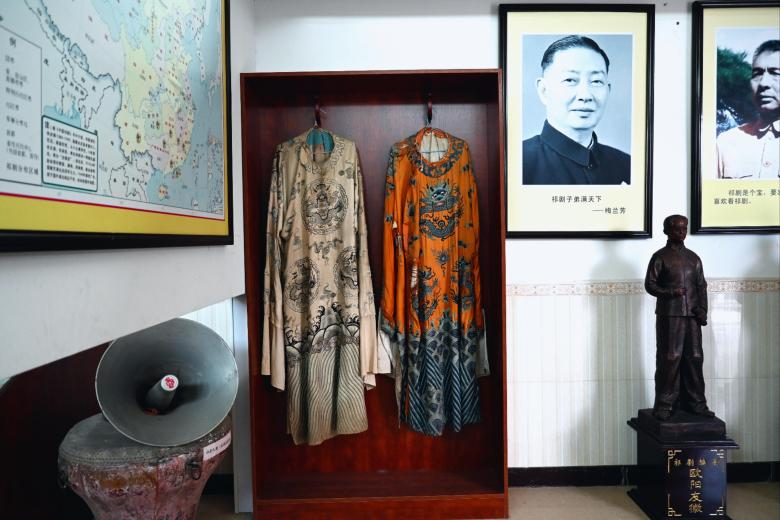 据悉,祁剧距今已有500余年历史,是湖南流传最广、影响最大的地方剧种之一。祁剧文化陈列馆内,传统戏服、脸谱、手写剧本和老艺人手工道具、乐器等实物依次排开。祁剧文化广场中,祁剧祖师爷、名角和著名编剧的雕像静静矗立、“忠、孝、仁、义”四个石刻大字格外醒目,据村干部介绍,这四个字既是祁剧剧本的主题思想,也是祁剧传承百年的文化内核。