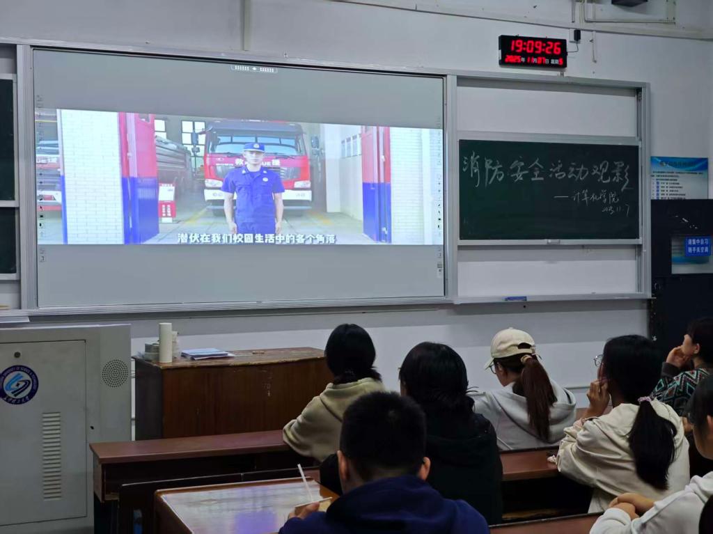 在全国第34个“119”消防宣传日来临之际,为深入强化校园安全教育,切实提升学生的消防安全意识和自防自救能力,11月7日,计算机学院于金盆岭校区精心组织各班级开展了消防安全月主题观影活动。