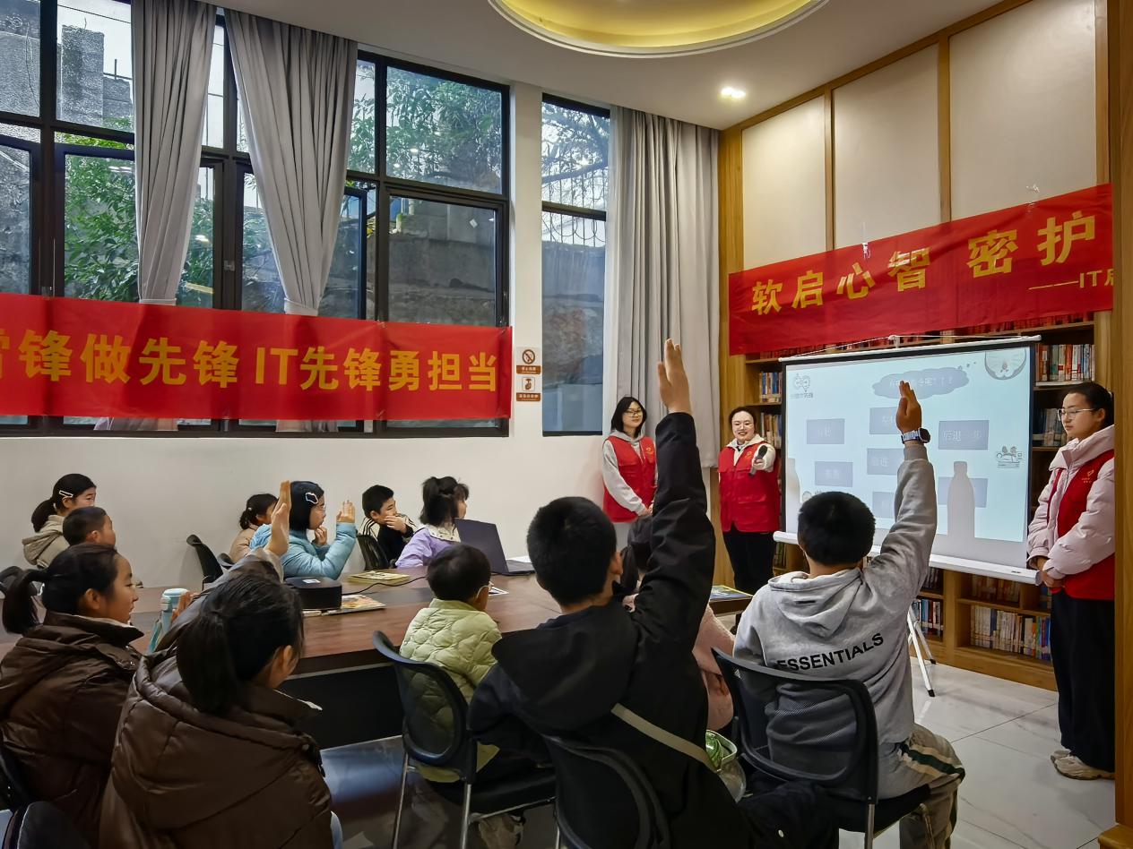 3月15日上午,计算机学院“勇松”IT志工服务团联合湖南烈士公园文化服务驿站,开展了“‘软’启心智,‘密’护安全”青少年数字素养启蒙课堂。活动通过硬件探秘、互动剧场、密码破译等趣味环节,带领中小学生走进奇妙的计算机世界,在践行雷锋精神中筑牢青少年信息安全意识。