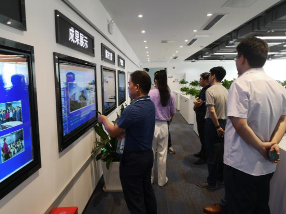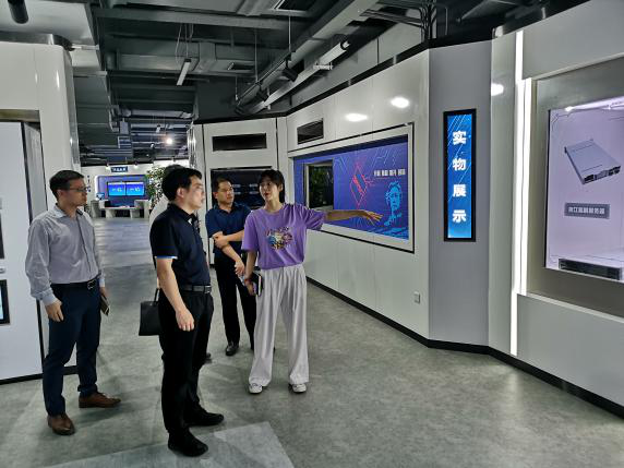 钱院长一行先听取介绍,了解湖南智能网联汽车产业云的主要业务架构和建设情况,随后参观了鲲鹏生态创新中心的鲲鹏服务器、智能网联车端和路侧产品展示。