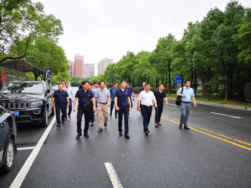 杨彦鼎副主任一行首先参观了学校“智慧道路技术研发平台”的规划建设场地,调研S-PRT微循环公交试验线和Sharing-City智慧小镇的规划布局情况,随后来到工科二号楼B-413会议室座谈。