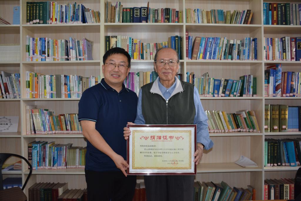 会议开始之前,张军辉教授为张起森教授捐赠书架揭牌,并代表学院向张起森教授颁发捐赠证书。随后,张起森教授从长沙理工大学60多年发展史开始说起,通过讲授学校老一辈科学家在基础十分落后的条件下做研究的种种故事,告诫年轻一代的交通人一定要传承这种不计较个人得失,埋头科研的精神。同时,张起森教授表示,交通学院一定要用好平台,培养一批将“论文写在祖国大地上”的具有大情怀的科学家。