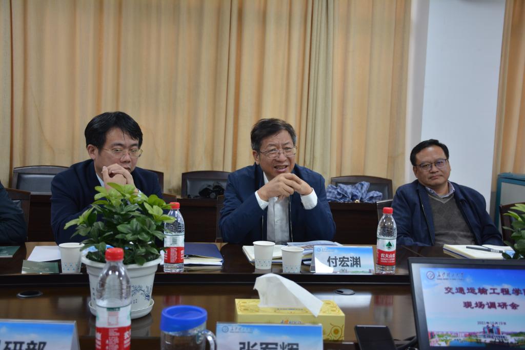 副校长刘朝晖指出:交通学院要进一步加强调查研究,摸清家底,找准短板;要认清形势,客观面对压力,做好思想动员与制度保障,充分调动全院教职工的积极性,达成高度共识;要突出重点,结合新工科改革和专业改造,推进一流专业建设,培养创新型复合型人才;要围绕国家级奖项、重大项目和经费等关键指标,做好学位点建设,推进学院建设发展再上台阶。