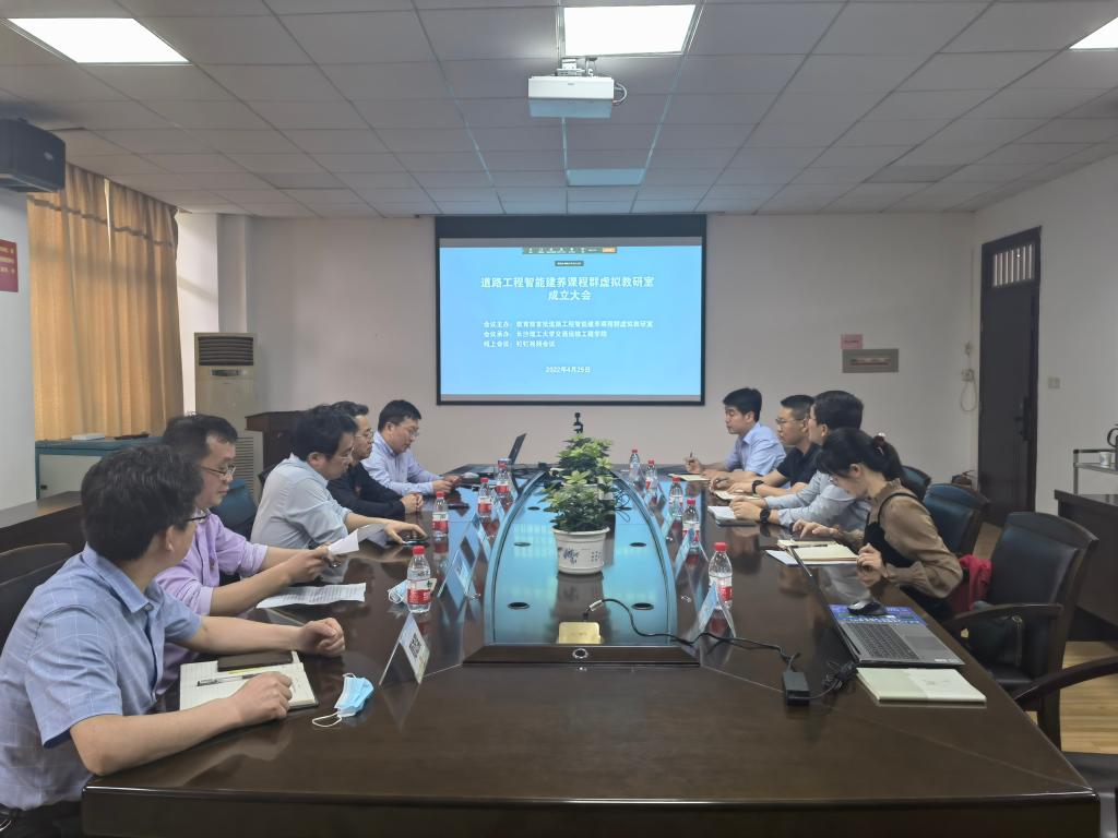 4月25日下午,长沙理工大学交通运输工程学院组织召开了教育部首批虚拟教研室建设试点“道路工程智能建养课程群虚拟教研室”成立大会。长沙理工大学副校长钱国平教授、教务处处长刘思强教授、质评中心贺晖主任、虚拟教研室带头人袁剑波教授,以及人民交通出版社、西南交通大学、大连海事大学、重庆交通大学、华南理工大学、东南大学、哈尔滨工业大学、湖南大学、中南大学、长安大学、南京林业大学、兰州交通大学、广西交科集团有限公司等13所成员单位相关领导和教师代表70余人出席本次会议。会议采用线上线下相结合的形式,由长沙理工大学交通运输工程学院院长张军辉教授主持。