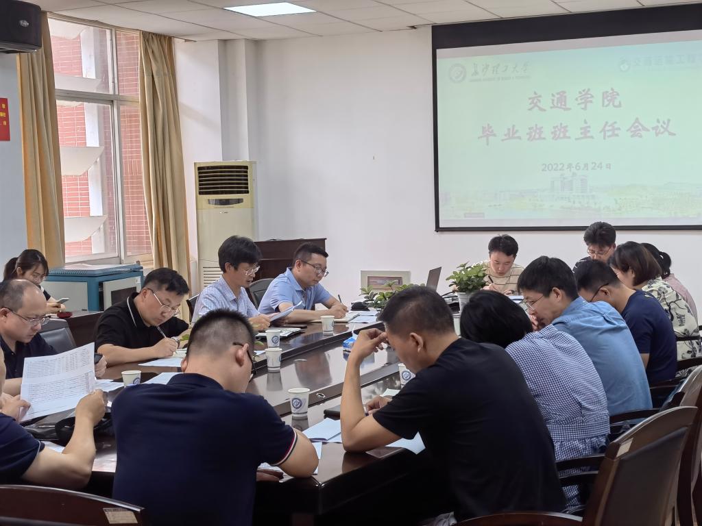 2022年6月24日,交通学院于云塘校区工二B413会议室召开毕业班班主任工作会议,学院党委书记刘朝辉、院长张军辉、党委副书记涂道勇、副院长周访滨、副院长高英力和2018级班主任参加会议。