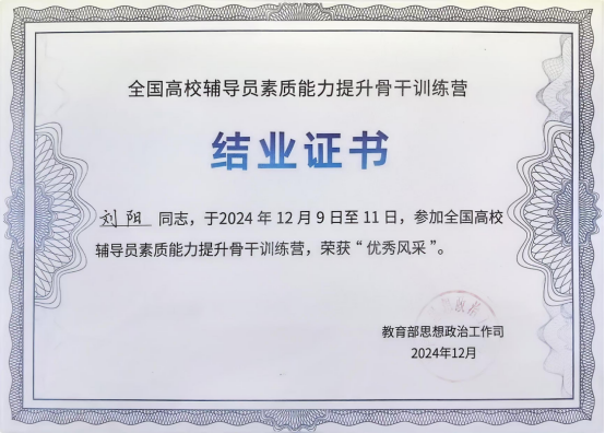 我院辅导员荣获2024年全国高校辅导员素质能力提升骨干训练营“优秀风采”称号