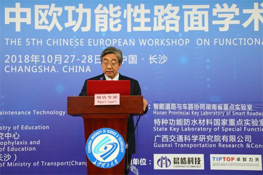 上午的主旨报告环节中,加拿大工程院院士、滑铁卢大学副校长苏姗泰教授作“加拿大功能性路面的发展和创新”主题报告,美国伊利诺伊大学先进交通研究与工程实验室主任伊马德·阿尔卡迪教授作主题为“功能性路面的发展和创新”的报告,田纳西交通厅常务副厅长德格斯作“路面工程的未来”主题报告;保罗总工程师、荷兰代尔夫特理工大学桑德拉·埃尔肯斯教授分别就“美国田纳西公路通过开级配抗滑磨耗层与高摩擦表面处理技术减少事故”、“橡胶沥青混凝土:从道路到模型”作专题报告。最后,中国工程院院士、长沙理工大学教授郑健龙作题为“基于拉伸模量与压缩模量差异的双模量理论及其在路面设计中的应用”的报告。