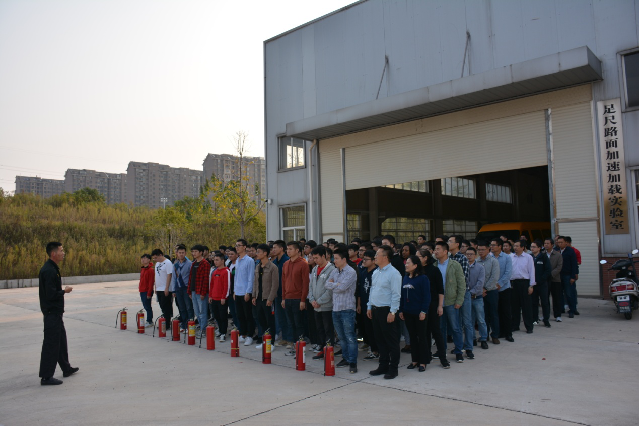 最后,在公路工程实验中心楼下空地,老师、同学们在姚教官的指导下演练了怎样安全正确的使用消防器材。
