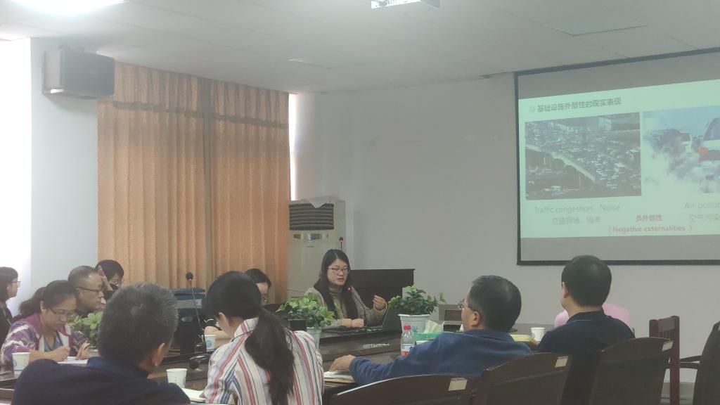 2019年11月15日下午两点半,东南大学土木工程学院建设与房地产系的朱蕾博士应邀来我院讲学,在雷竞技官网云塘校区工科二号楼B413为全院师生做了一场主题为“基础设施外部性研究的科学计量分析”的讲座。讲座由胡庆国书记主持,我院百余名师生聆听了此次讲座。
